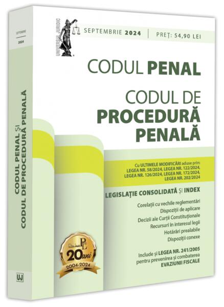 CODUL PENAL ȘI CODUL DE PROCEDURĂ PENALĂ: SEPTEMBRIE 2024Cu NOILE MODIFICĂRI aduse prin:LEGEA NR. 58/2024LEGEA NR. 122/2024LEGEA NR. 126/2024LEGEA NR. 172/2024LEGEA NR. 202/2024 Include și LEGEA NR. 2...