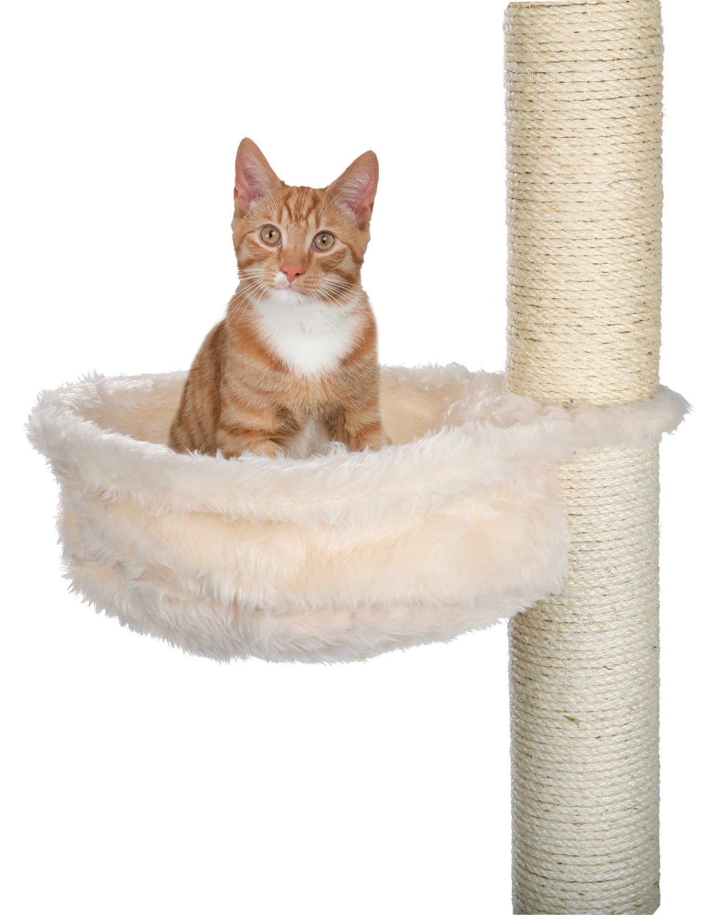 Cos pentru pisica. Se poate atasa la cele mai multe posturi de zgariere in loc de o platforma.nnInvelis cu plus lung (poliester).nCu cadru metalicnCuloare: cremnnCosul se vinde fara stalpul din sisal.nDimensiune: ø 38 cm Greutate suportata pana la: 4,5 kg