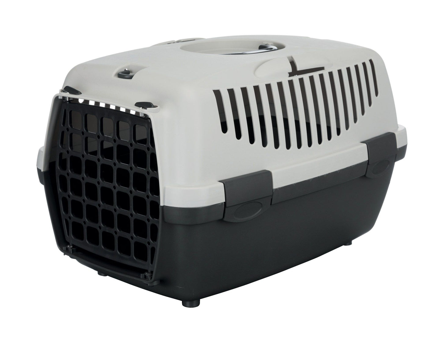 Cusca transport animale Trixie Capri 1, 48x32x31 cm, Gri.nCaracteristici: nnUsa din fata permite scoaterea si punerea animalului in trasportor;nIdeal pentru vizitele la veterinar;nVentilatie optima datorita orificiilor din partea superioara a transportorului;nCu maner: pentru un transport comod;nFixare: cu cleme.nnn