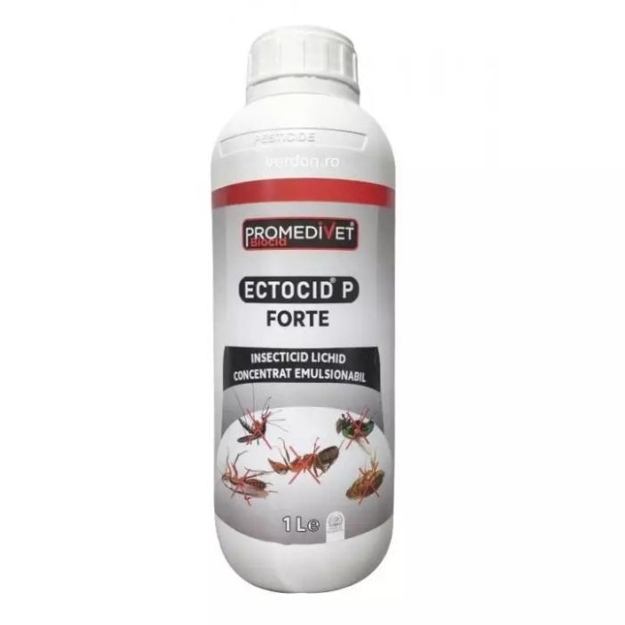 Ectocid Forte, 1 l se utilizează pentru combaterea insectelor zburătoare şi târâtoare, pentru dezinsecţia clădirilor, vehiculelor publice, clădirilor industriale, magazinelor şi a adăposturilor, spaţiilor destinate pentru creşterea animalelor.