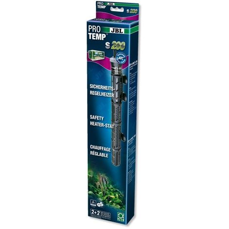 JBL ProTemp S200 , incalzitor intern. nEste proiectat conform stadiului actual al tehnicii si este adecvat atat pentru acvarii cu apa dulce, cat si pentru cele cu apa sarata cu o capacitate de 100 – 300 l (lungime 80 – 120 cm).nUn cos de protectie din material plastic care inconjoara vasul de cuart impiedica, ca pestii sa se arda la contactul cu suprafata fierbinte. Vasul de cuart al sigurantei incalzitorului, care oricum este foarte rezistent, este astfel protejat suplimentar contra spargerii datorata manipularii inadecvate sau din neatentie. Un comutator termic de suprafata din incalzitor, intrerupe alimentarea cu curent electric in cazul unei supraincalziri, de exemplu daca stecherul nu a fost tras din priza inainte de schimbarea apei, iar incalzitorul a ramas partial pe uscat.nConstructia (forma) scurta si compacta face posibila montarea incalzitorului in pozitie verticala in aproape toate tipurile de acvarii comercializate.nJBL ProTemp regulator de incalzire pentru acvarii este complet etans si poate functiona chiar si complet scufundat. O rotita de reglare mare cu marcaje usor de citit, face posibila o reglare usoara a temperaturii dorite, in zona 20 - 34ºC. Un control suplimentar cu un termometru de acvariu este insa necesar neaparat.n Curatare si ingrijire:nInainte de orice lucrare va rugam deconectati aparatul de la retea.nIn apa tare (calcaroasa) se pot forma cu timpul calcifieri pe suprafata incalzitorului sau al cosului de protectie din material plastic. Acestea pot fi indepartate cu ajutorul solutiei JBL BioClean A. In cazul unor calcifieri persistente lasati peste noapte incalzitorul si / sau cosul de protectie din material plastic, in solutia JBL BioClean A. Apoi clatiti bine cu apa limpede si instalati-le la loc.n Avertisment:nTermostatul de siguranta nu este conceput ca un termostat cu actionare automata, prin urmare, necesitatea deconectarii aparatului de la reteaua electrica in momentul in care este schimbata apa ramane valabila, ci este mai degraba un dispozitiv suplimentar de siguranta si protectie impotriva accidentelor cauzate de contactul cu curentul electric. Datorita constructiei lui, sistemul de incalzire se poate incinge foarte tare inainte ca termostatul sa se inchida. Acest lucru poate fi datorat grilajului de protectie.nIn primele 24 – 48 de ore de la pornire, comparati in mod frecvent temperatura afisata cu temperatura indicata de termometrul din acvariu. In cazul oricarei erori de afisaj, actionati astfel: daca temperatura este prea mica, cresteti temperatura cu 1 - 2 grade C, iar daca temperatura este prea mare, scadeti-o cu 1 - 2 grade C. Apoi asteptati aproximativ 12 ore inainte de a verifica daca a fost atinsa temperatura ceruta.nNota:Temperatura maxima ce poate fi asigurata intr-un acvariu cu ajutorul unui sistem de incalzire depinde de volumul de apa si de diferenta de temperatura dintre apa din acvariu si mediul in care acesta este amplasat! Nivelul afisat pe ecranul aparatului reprezinta numai un instrument de ghidare, acesta neasigurand faptul ca temperatura afisata va fi atinsa.nProdus de catre: JBL GmbH & Co. KGn n n