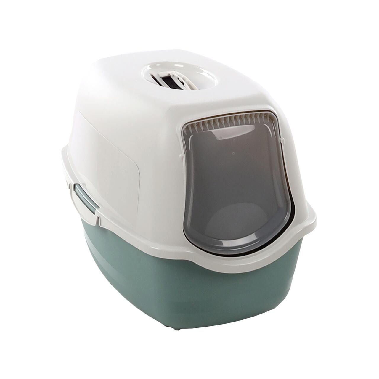 Litieră realizată din material plastic reciclatnInclude filtru de cărbune pentru absorbția mirosurilornMâner pentru facilitarea manipulăriinPartea superioară detașabilă și ușă batantănColțuri rotunjite pentru o curățare ușoarănnEste realizată din material plastic reciclat și reciclabil, rezistent și durabil, non-toxic pentru pisici.nnPartea superioară este prevăzută cu orificiu pentru aerisire cu un filtru de cărbune pentru absorbția mirosurilor neplăcute.nLitiera este acoperită, pentru a oferi felinei un spațiu intim, în care ea să se simtă în siguranță și pentru a limita împrăștierea așternutului, excrementelor și a mirosului acestora.nRama dublă, plasată la nivelul unde se atașeză acoperișul, previne împrăștierea așternutului murdar în exteriorul litierei.nPartea transparentă a litierei se poate ridica, pentru ca igienizarea litierei să se desfășoare fără probleme.nDeschiderea largă permite accesul facil al felinei în interior. Totodată îi permite să mențină sub observație spațiul din jurul litierei (aspect deosebit de important pentru ca felina să se simtă în siguranță).nAccesul în interior este acoperit cu o clapetă batantă, transparentă.nAcoperișul litierei este fixat de pereții laterali ai bazei, prin intermediul unor cleme.nPoate fi ridicat pentru a permite o igienizare ușoară a interiorului.nÎn partea superioară are un mâner, care permite manevrarea cu ușurință a litierei.nnDIMENSIUNE: 56 (L) x 39 (l) x 39.5(h) cm.