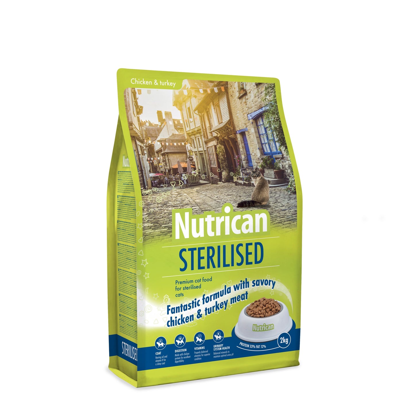 Hrană completă premium pentru pisici adulte sterilizate, din carne gustoasă de pui şi curcan, e alcătuită din 33% proteine, cu 12% conţinut de grăsimi şi asigură o energie metabolizabilă de 3600kcal/kg. nCaracteristici si beneficii:nReţetă pe bază de proteină de pui, pentru o digerabilitate excelentănUleiul de hering şi biotina asigură o blană strălucitoarenOferă un echilibrul adecvat de vitamine, pentru o mai bună condiție fizicănSusţine un sistem urinar sănătos prin conţinutul de minerale care păstrează un pH optim al urinei.