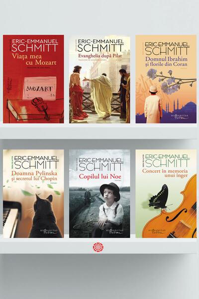 Pachetul conține următoarele titluri din Seria de autor Eric-Emmanuel Schmitt: Doamna Pylinska și secretul lui Chopin Concert în memoria unui înger Viaţa mea cu Mozart Domnul Ibrahim şi florile din...