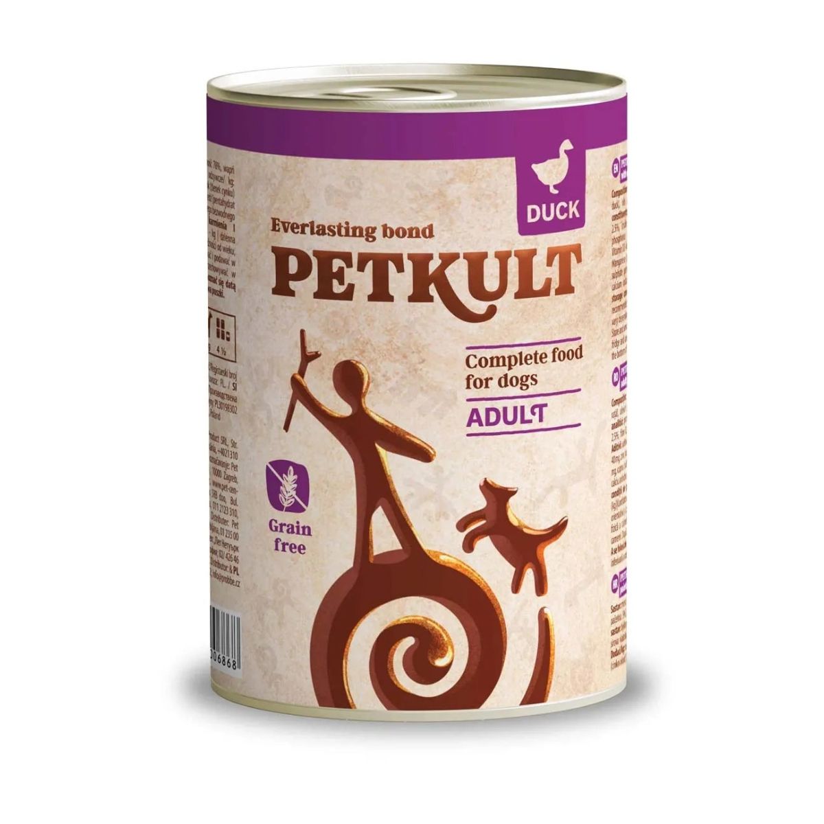 Hrana umeda pentru caini Petkult Adult cu rata 400 g este recomandata tuturor raselor de caini adulti carora le ofera o alimentatie atent echilibrata pentru a le mentine starea de sanatate.nHrana umeda pentru caini Petkult Adult cu rata 400 g contine 100 % proteina de origine animala ( fara ingrediente de origine vegetala ).nCaracteristici si beneficii hrana umeda pentru caini Petkult Adult cu rata 400 g:nnProteine de calitate superioara cu grad ridicat de digestibilitate si asimilare ce furnizeaza nutrienti esentiali mentinerii starii de sanatate. Proteinele sustin procesul de regenerare al tesuturilor si organelor, au un rol important in imunitate, sunt cele care asigura vitalitatea si buna functionare a organelor si tesuturilor. Proteina este ingredientul de baza in alimentatia cainilor ( animale carnivore );nPrevine anemia. Carnea de rata intra in categoria carnurilor rosii, fiind o excelenta sursa de fier;nMentine greutatea corporala. Proteinele mentin senzatia de satietate si ajuta la consolidarea tesutului muscular. Lecitina ,acizii grasi omega 3 (ulei de in ), reduc colesterolul si trigliceridele limitand formarea tesutului gras.