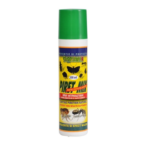 Insecticid pentru combaterea insectelor cu habitat domestic (pureci, capuse, paduchi etc.) sau ascuns (purici, plosnite, paduchi, furnici, capuse etc), din vecinatatea animalelor sau in mediul de crestere al acestora (crapaturi, cuiburi, locuri ascunse umede, cosuri, presuri, paturi etc.).nUTILIZARE: Insecticid pentru combaterea insectelor cu habitat domestic (pureci, capuse, paduchi etc.) sau ascuns (purici, plosnite, paduchi, furnici, capuse etc), din vecinatatea animalelor sau in mediul de crestere al acestora (crapaturi, cuiburi, locuri ascunse umede, cosuri, presuri, paturi etc.).nVALABILITATE : 2 ani de la data fabricarii, pastrat in conditii corespunzatoare.nMod de comercializare: generala - populatie.nClasificare: N: Periculos pentru mediul inconjurator.Xn - Nociv ; Nr. ONU: 2902, Clasa 6.1.nFraze S:S2 A nu se lasa la indemâna copiilor.S13 A se pastra departe de hrana, bauturi si hrana pentru animale.S23 A nu se inspira aerosolii.S24 Ase evita contactul cu pielea.S25 A se evita contactul cu ochii.S26 In cazul contactului cu ochii, spalati imediat cu multa apa si consultati mediculS29 A nu se arunca la canalizare.S36/37/39 Purtati echipament de protectie corespunzator, manusi si masca de protectie pentru ochi/fataS60 Acest produs si ambalajul (recipientul) sau se vor depozita ca un deseu periculos.S61 A se evita aruncarea in mediul inconjurator.A se consulta instructiunile speciale / fisa de securitateFraze R:R20/21/22 Nociv prin inhalare, in contact cu pielea si prin inghitire.R43 Poate provoca sensibilizare in contact cu pielea?R50/53 Foarte toxic pentru organismele acvatice, poate provoca efecte adverse pe termen lung asupra mediului acvaticFraze H:H302 Nociv in caz de inghitire.H312 Nociv in contact cu pielea.H317 Poate provoca o reactie alergica a pielii.H332 Nociv in caz de inhalare.H400 Foarte toxic pentru mediul acvatic.H410 Foarte toxic pentru mediul acvatic, cu efecte pe termen lung