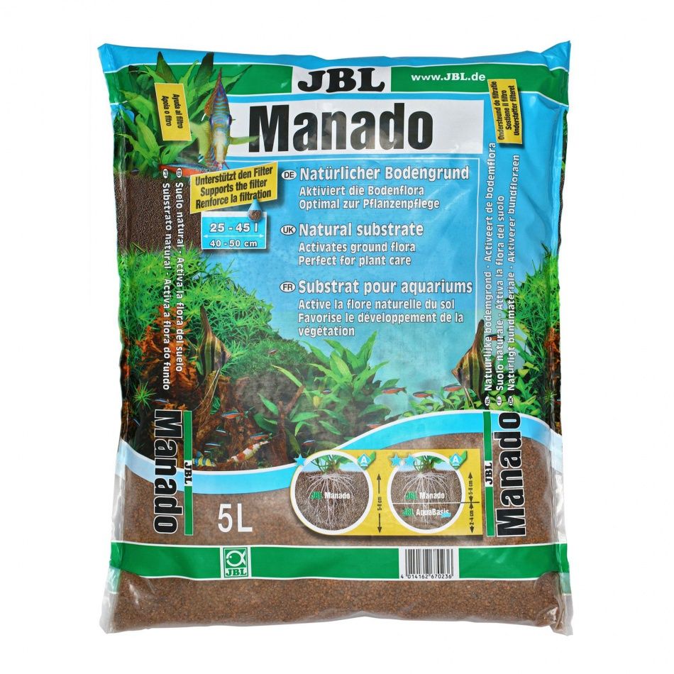 JBL Manado, substrat decorativ cu suprafata extrem de poroasa.nJBL Manado imbunatateste calitatea apei prin favorizarea colonizarii acestuia cu bacterii benefice, care chiar de la inceput vor impiedica cresterea nedorita a algelor. In plus, JBL Manado functioneaza ca o "baterie reincarcabila" deoarece excesul de nutrienti este stocat in substrat, surplusul eliberandu-se doar cand este necesar. nCuloarea "lateritei" a substratului JBL Manado face ca pestii sa fie mai putin stresati, fapt pentru care acestia vor arata cele mai intense culori.nForma rotunjita si fina a granulelor protejeaza mustatile sensibile ale pestilor. nUn element foarte important in comparatie cu alte produse similare este faptul ca JBL Manado nu reduce in mod periculos valoarea duritatii carbonatului (KH) si prin urmare, contribuie la stabilitatea valorii pH-ului.nMod de folosire:nClatiti bine substratul inainte de folosire cu apa calduta pentru a elimina praful rezultat in urma manipularii produsului. Poate fi folosit ca atare, un strat de 5-8 cm sau peste un substrat fertil pentru plante.nPentru umplerea acvariului, cea mai buna modalitate este de a plasa o placa plana(farfurie) sau ceva asemanator pe substratul acvariului, peste care se poate turna usor fluxul de apa. In acest fel evitandu-se deranjarea substratului si tulburarea apei. Fiind un substrat poros si usor exista posibilitatea ca la inceput unele granule din componenta lui sa pluteasca o perioada. Acestea se pot inlatura folosind un minciog pentru pesti.nProdus de catre: JBL GmbH & Co. KGn