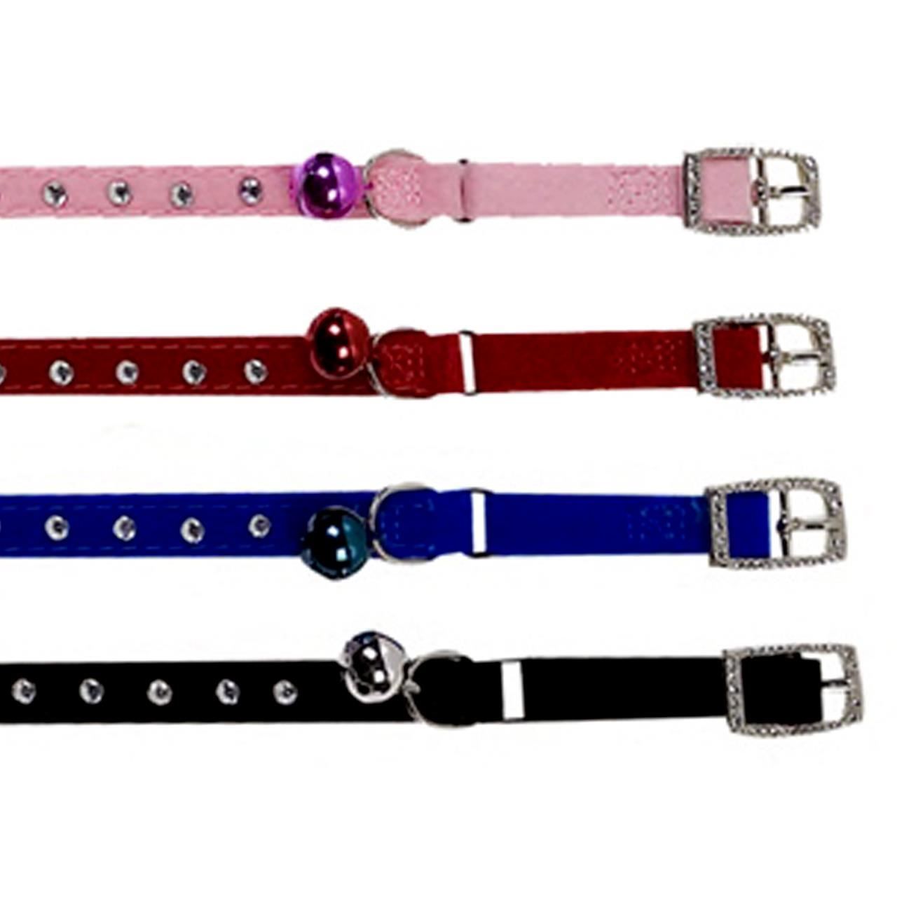 Zgarda este creata din velur si este usor ajustabila si confortabila. nProdusul are un design modern, cu aplicatii metalice si este dotata cu un clopotel.nDimensiuni: 30CM*10MM.nIntretinere: Se sterge cu o carpa uscata.